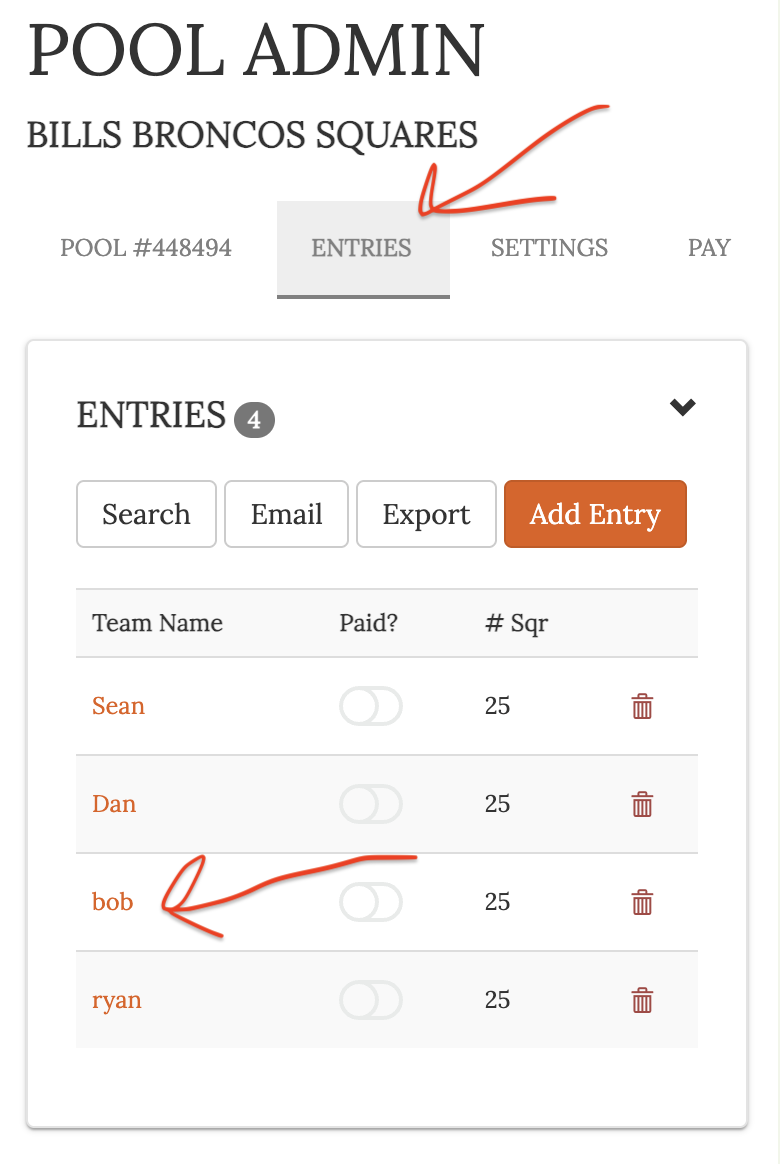 If you've created a Football Squares pool and need to change the name for any of the squares, you can do so from your pool admin page with these instructions.