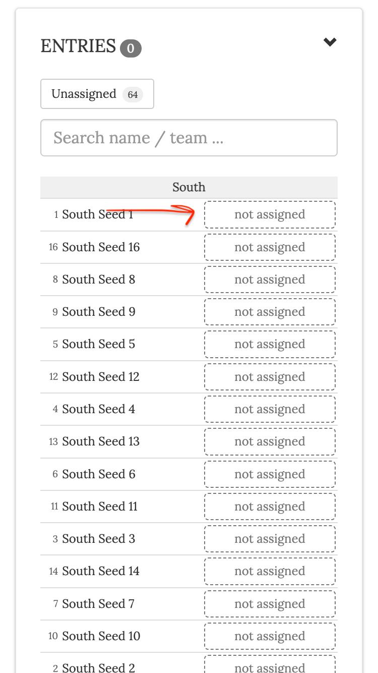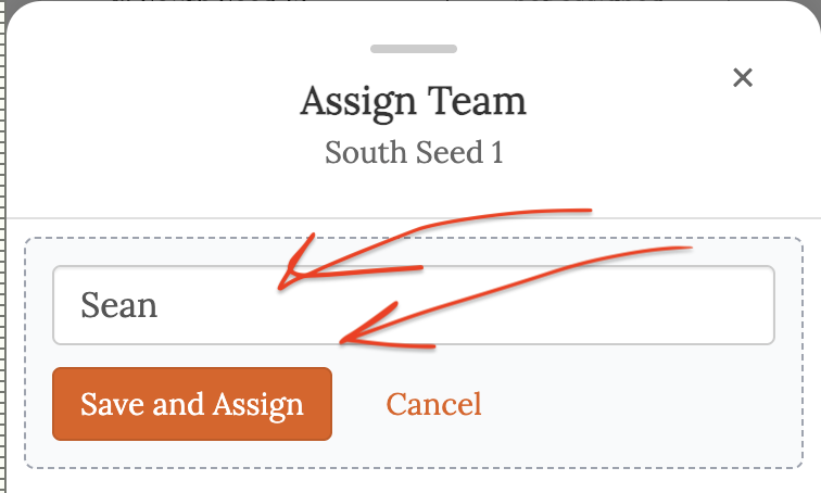 If you want to assign your teams in your NCAA Takeover Pool, you can create your pool using the Manual option for team assignment the click the button next to the team name that says "not assigned" and enter a new name to assign (or choose from one of the existing names).